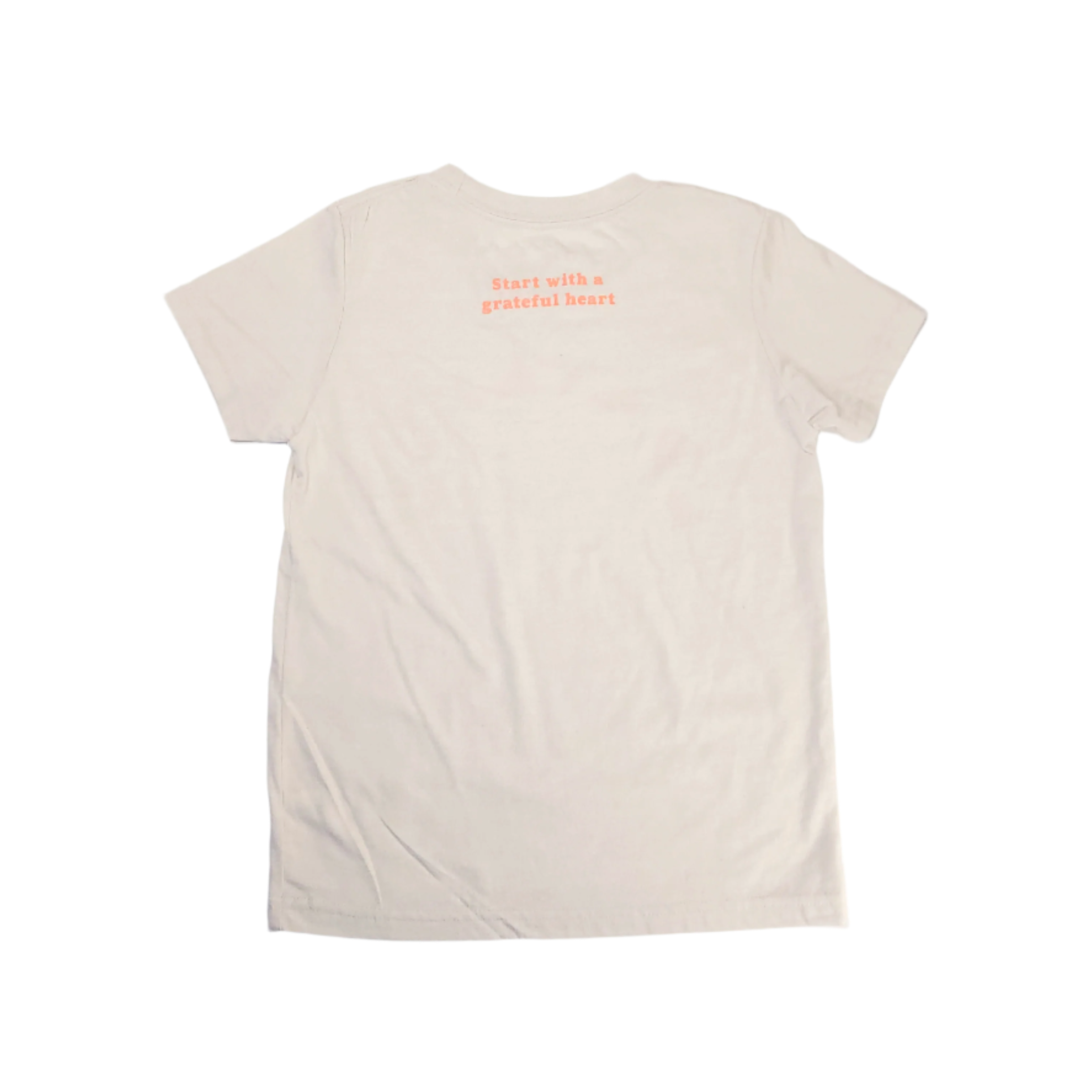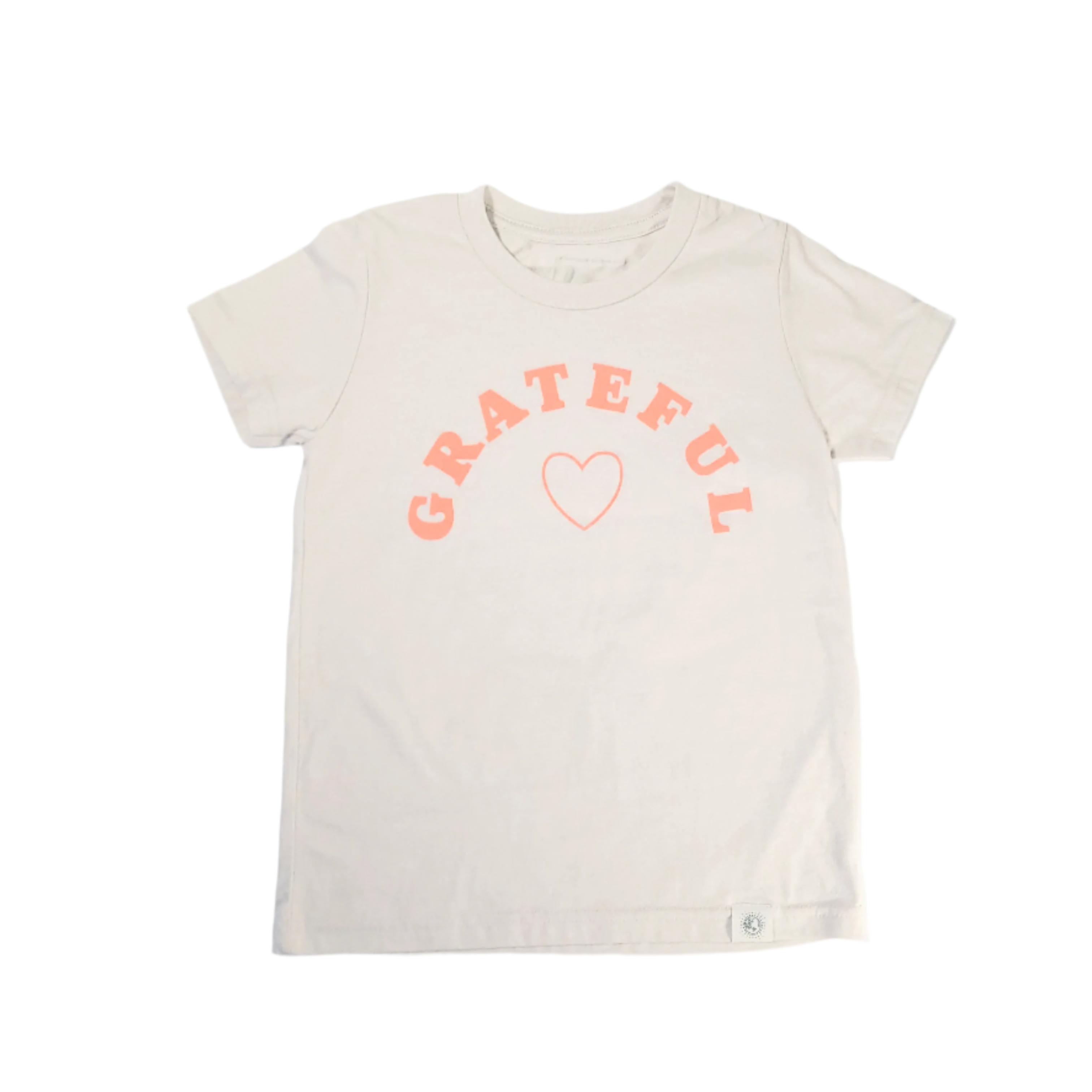The GRATEFUL Youth Tee in Heather Dust features screen-printed artwork on the center chest and tagback, with additional print detail on the interior neck label. Finished with a pinch tag, this soft, lightweight tee is designed for everyday comfort and mindful style.