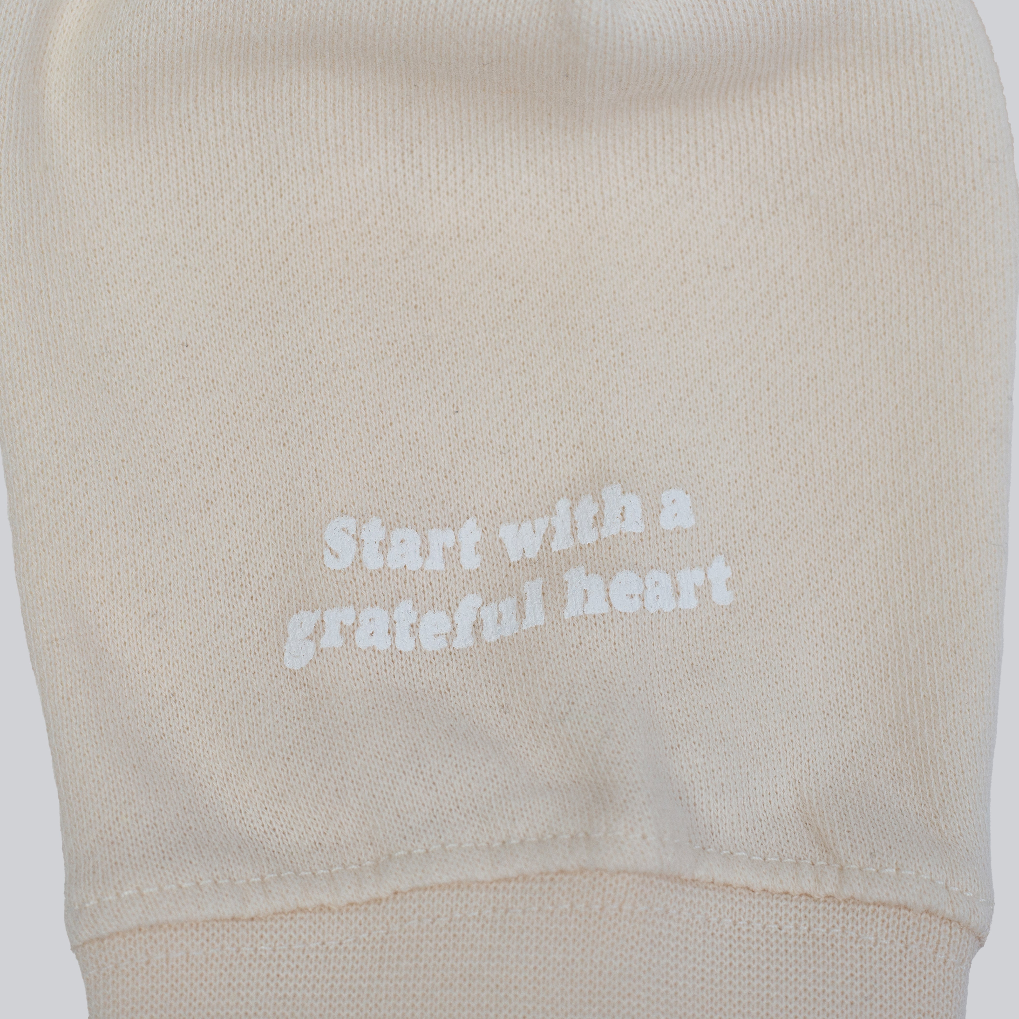 The GRATEFUL Women’s Cropped Hoodie in bone features screen-printed artwork on the center chest, left wrist, and right wrist. Additional print details on the inside front left hem and interior neck label add a custom touch, while a pinch tag finishes the look. Soft, lightweight, and designed for everyday ease with a cropped silhouette.