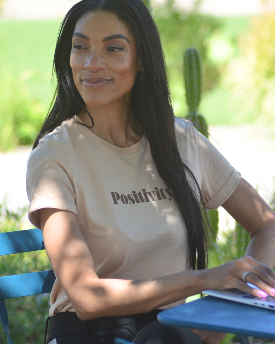 Wear what you believe. This soft and lightweight garment features screen-printed affirmations on the chest, back, and hip—designed to express the power of positivity from every angle. Finished with subtle interior details and a signature pinch tag, it’s a mindful essential for everyday wear.